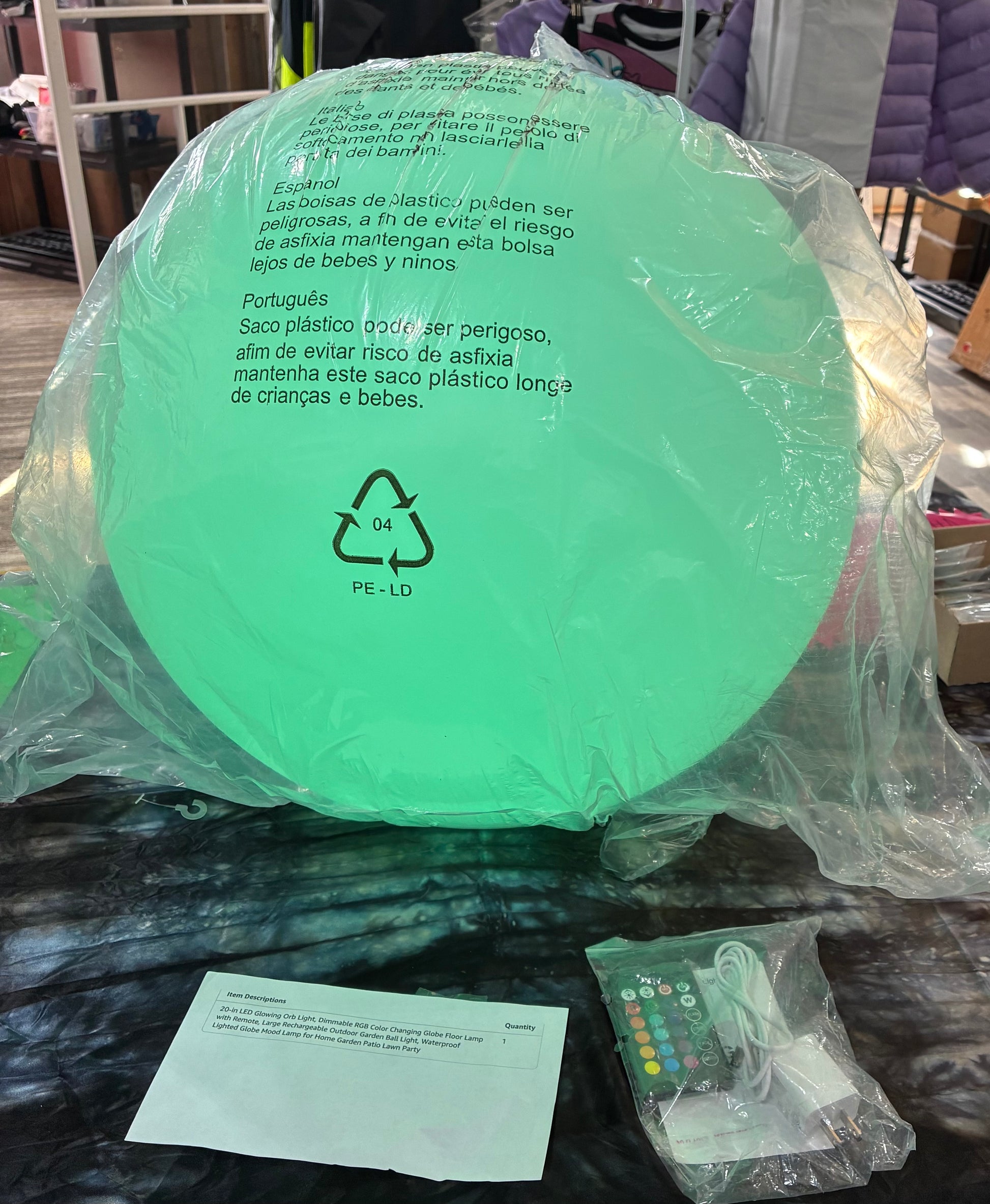 20'' LED GLOWING BALL RECHARGEABLE ORB LIGHT W/REMOTE