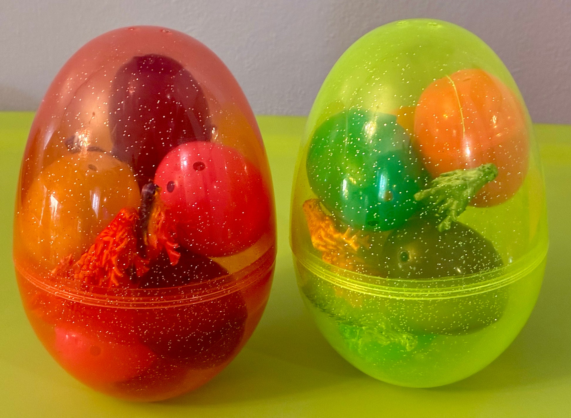 These are the dino car eggs and dragons .