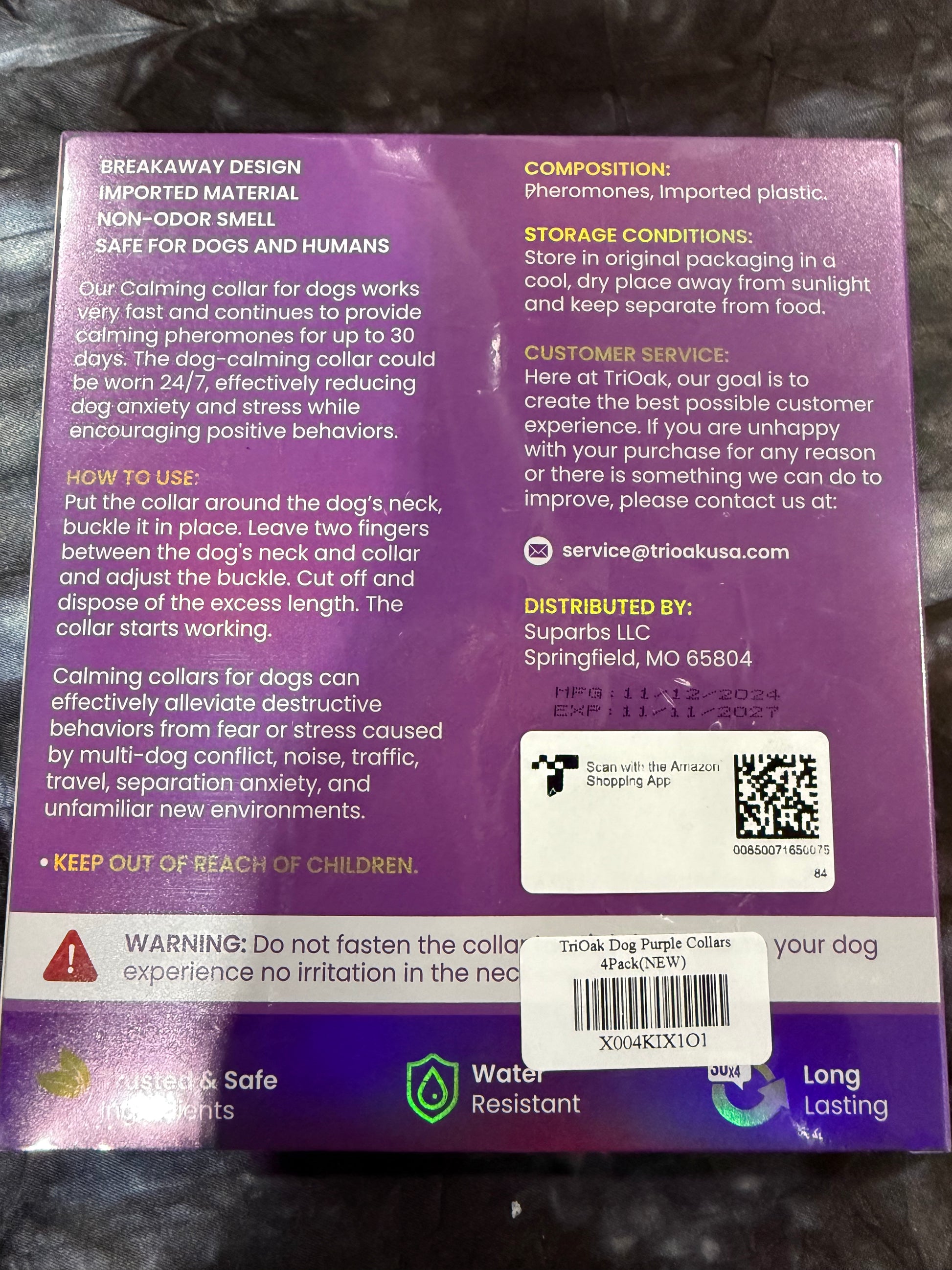 TriOak; 4 Pack, Works Fast and Continues to Provide Calming Pheromones for up to 30 Days. Could Be Worn 24/7, effectively reducing Anxiety and Stress while Encouraging Positive Behaviors, Water-Resistant, Expiration 11/11/2027