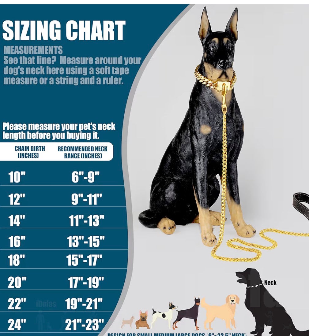GOLD PLATED CHAIN DOG COLLAR CUBAN LINK