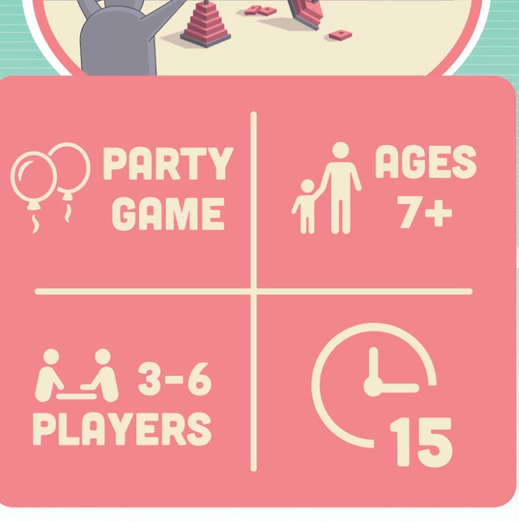 In this game, everyone has a secret identity, either good or bad. Play by scattering the bricks into the play area and closing your eyes. Good Wombats build towers. Bad Wombats secretly sabotage those towers. Vote to eliminate the most suspicious wombat. Complete the towers to win.