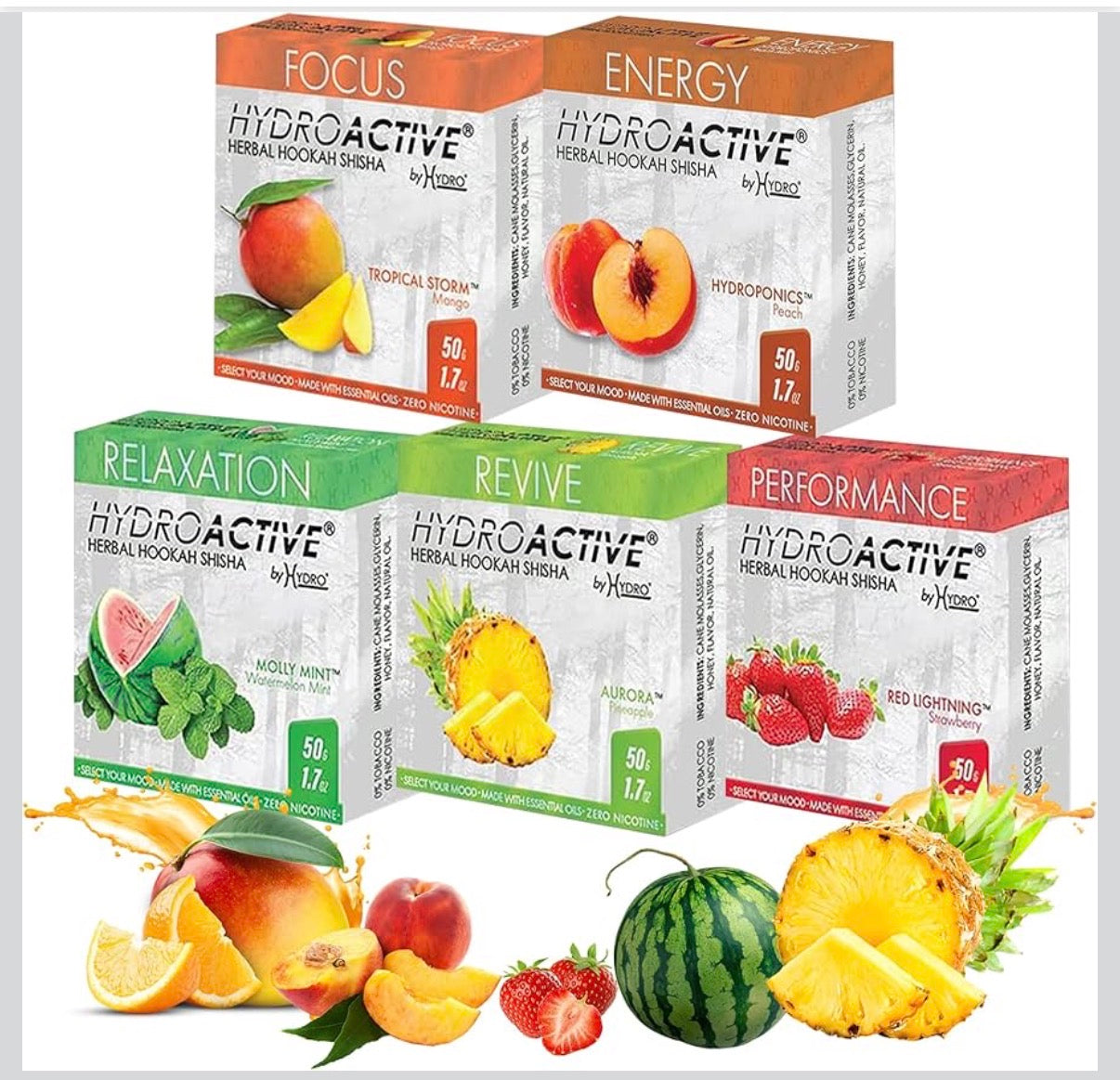 Tropical Active Mix with Essential Oils, Hookah Shisha in Peach, Strawberry, Mango, Pineapple, Watermelon Mint, 50-Grams, 5 Pack