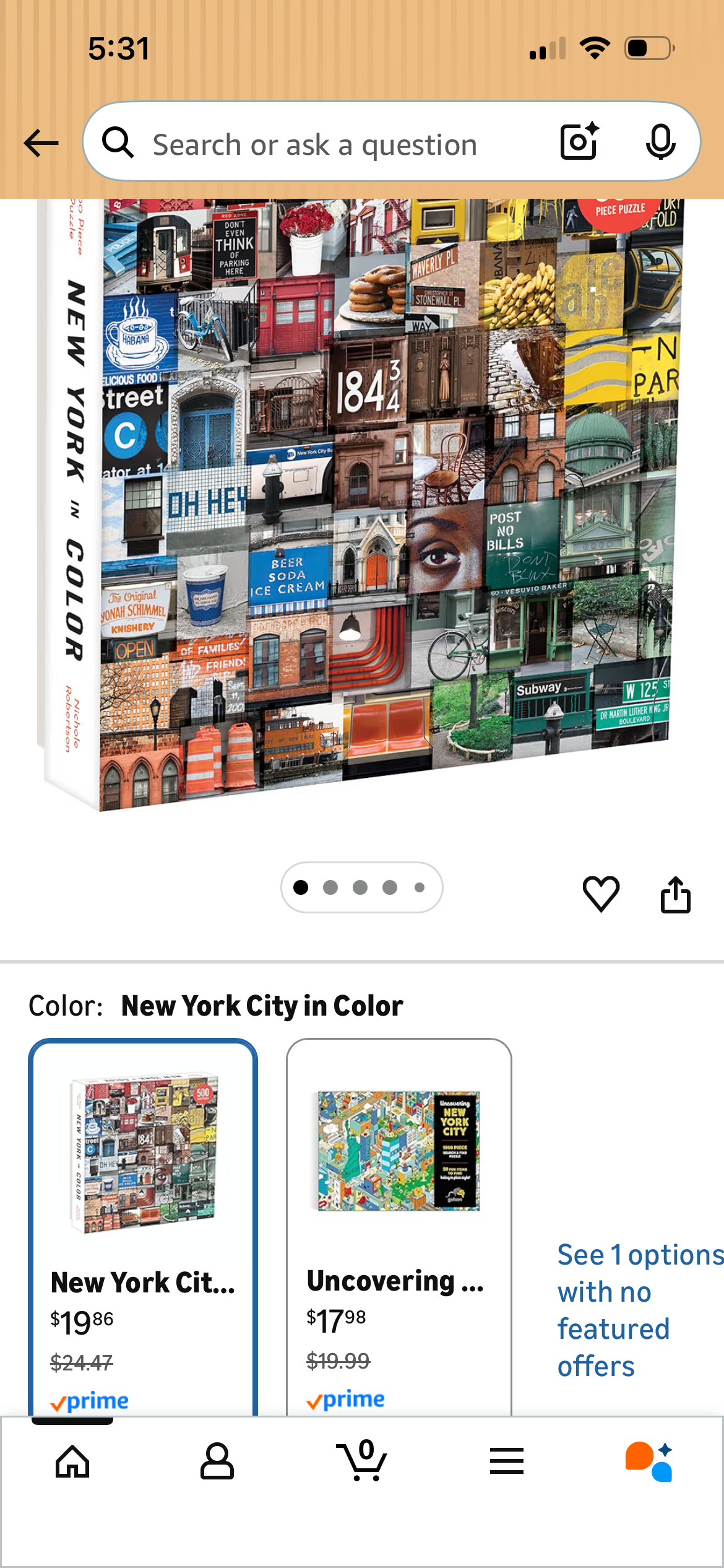 This jigsaw puzzle features a colorful collage of snapshots from around New York City by photographer Nichole Robertson.