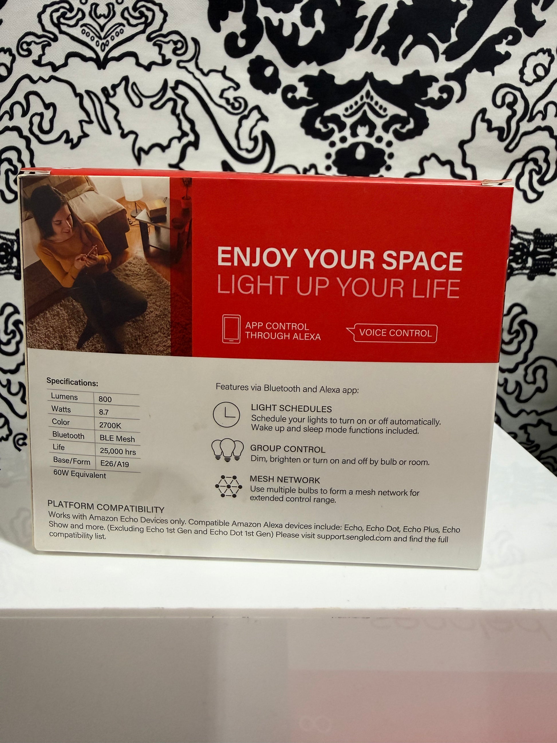 Sengled; Works with Amazon Echo Devices, App/Voice Control through Alexa, Features include Light Schedules, Group Control, Mesh Network, 800 Lumens, 60W Eqivalent, 2 Pack