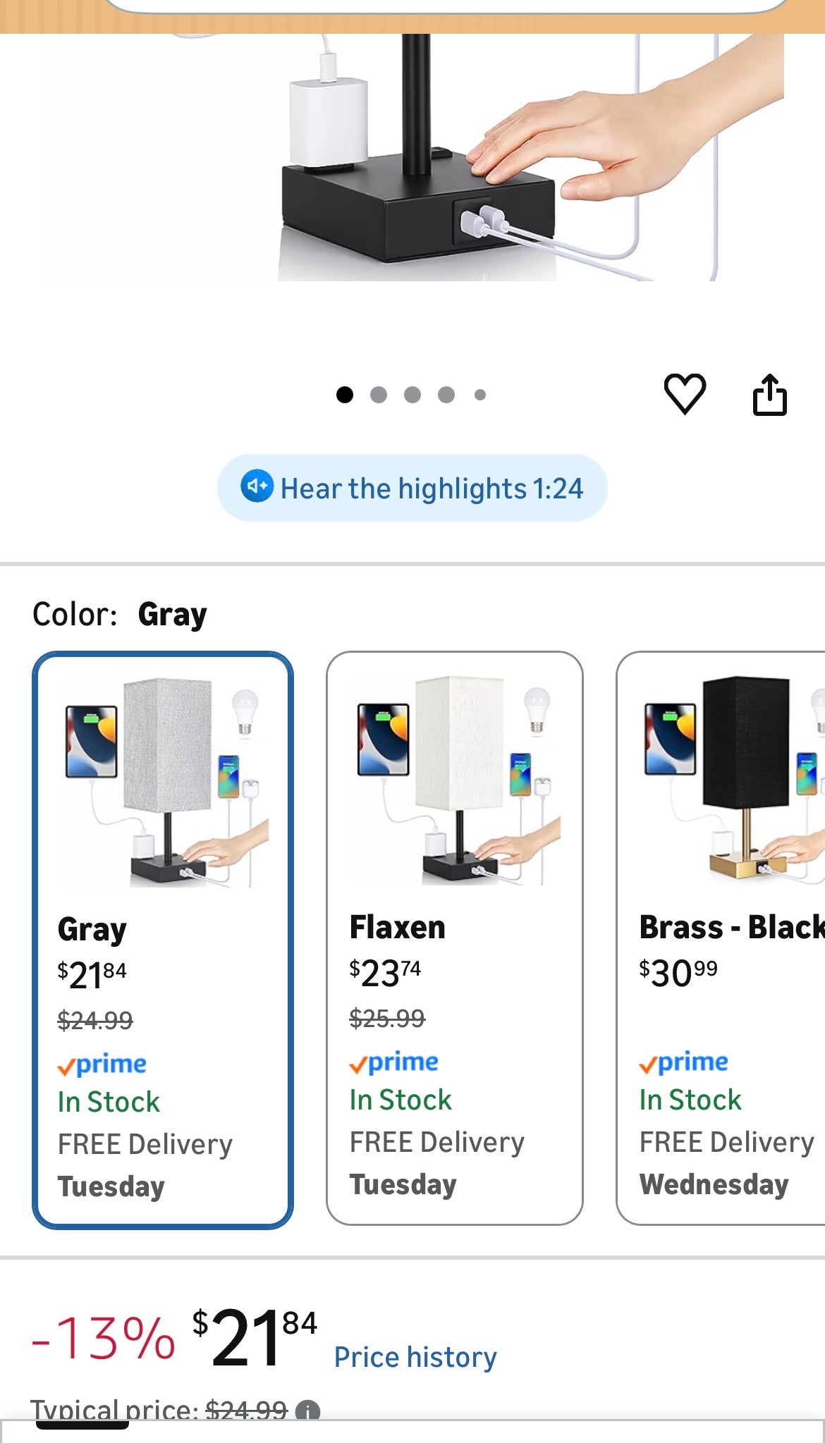 USB A+C Charging Ports & AC Outlet: In addition to providing light, this modern bedside table lamp features a USB C port and a USB A port (5V/2.1A) and two AC outlets (120V). Whether the lamp is on or off, you can conveniently charge your devices using these ports and outlets