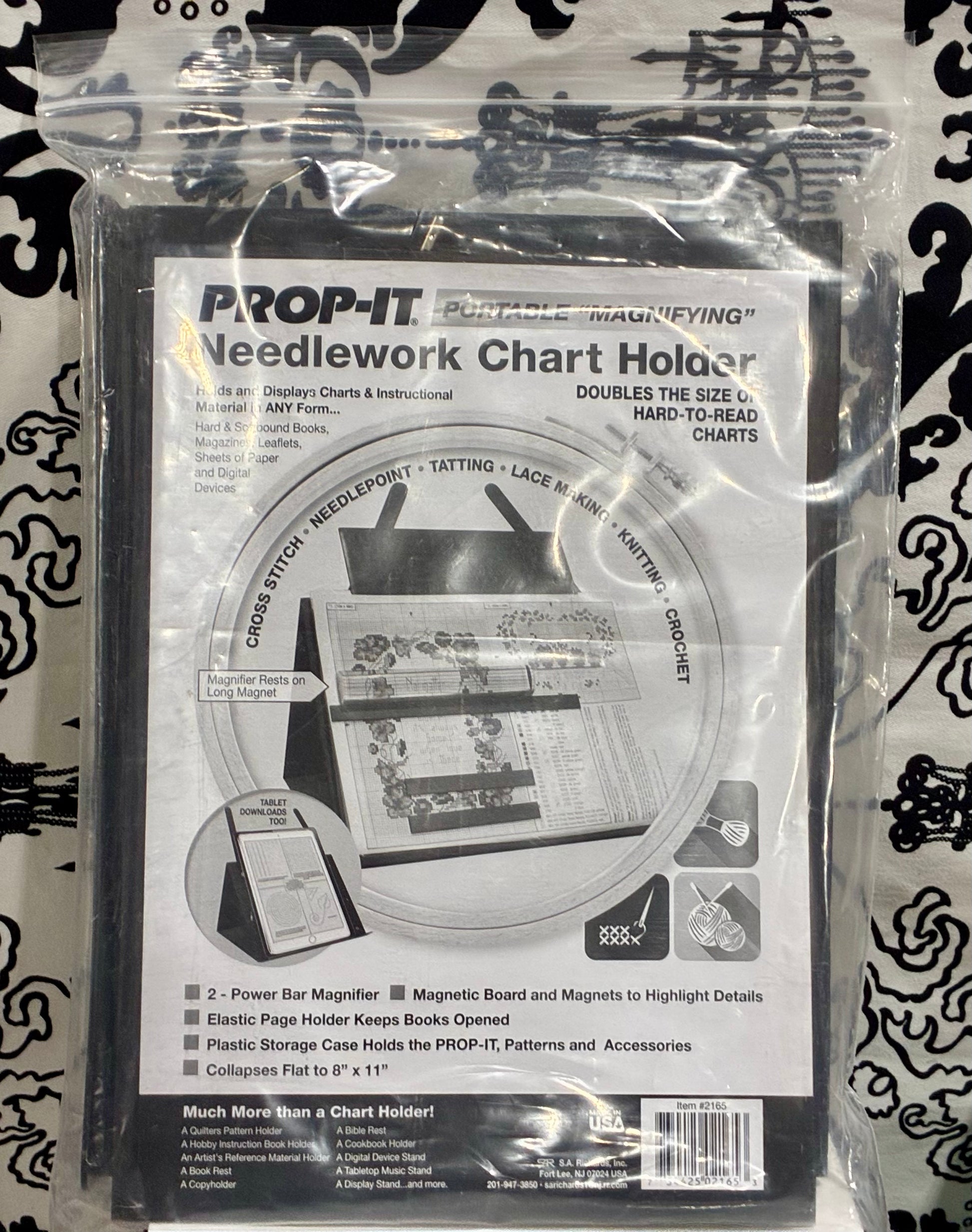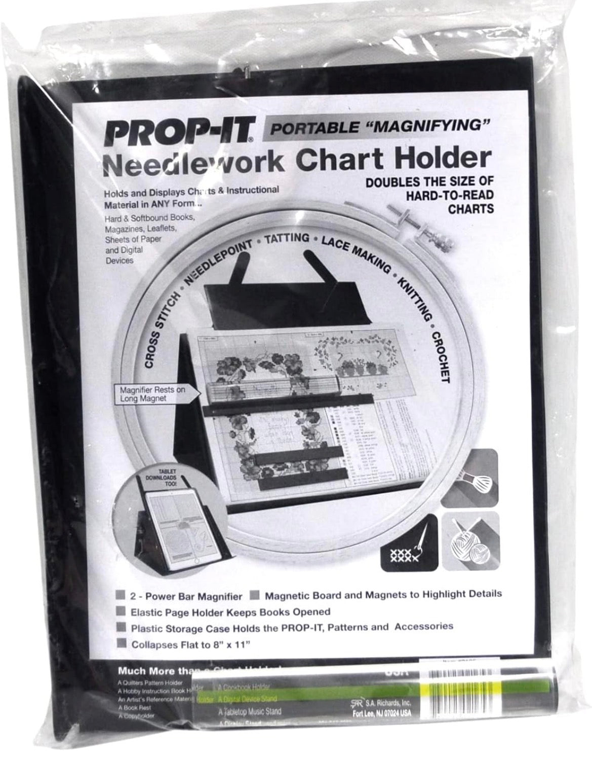 The PROP-IT Portable Magnetic Needlework Chart Holder (Item #2165) is a versatile tool designed to hold and magnify patterns and instructional materials for various crafts. @